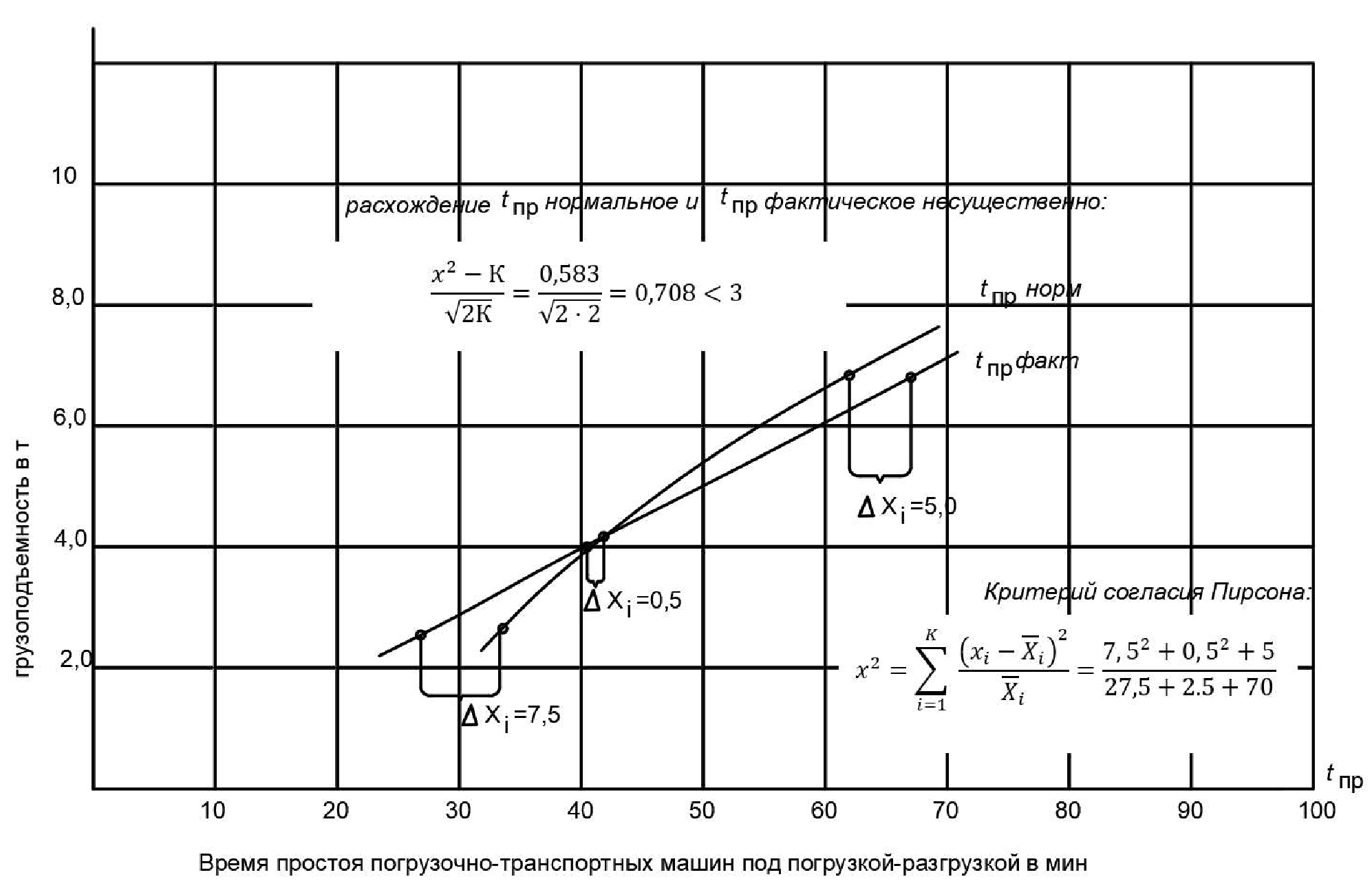 Поскольку средние нормативы могут значительно отличаться от реальных условий эксплуатации погрузочно-транспортной машины, важно определить, насколько велика эта разница и повлияет ли она на вышеуказанные выводы. С этой целью проведен хронометраж времени простоя погрузочно-транспортных машин различного типа и грузоподъемности под погрузочно-разгрузочными операциями при сплошных рубках леса с верхних, нижних складов и других объектов.