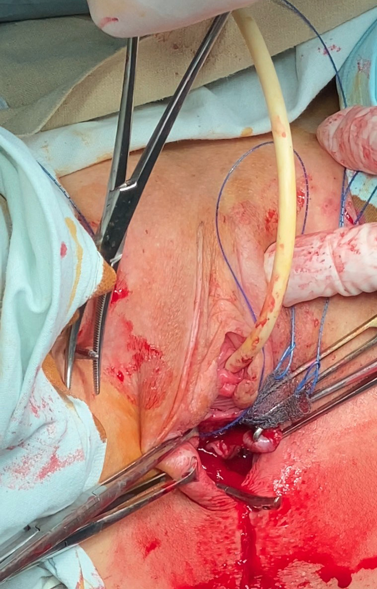Fig. 2. Transobturator cervicosuspension using titanium implants.