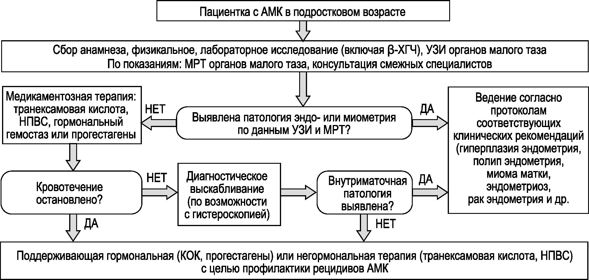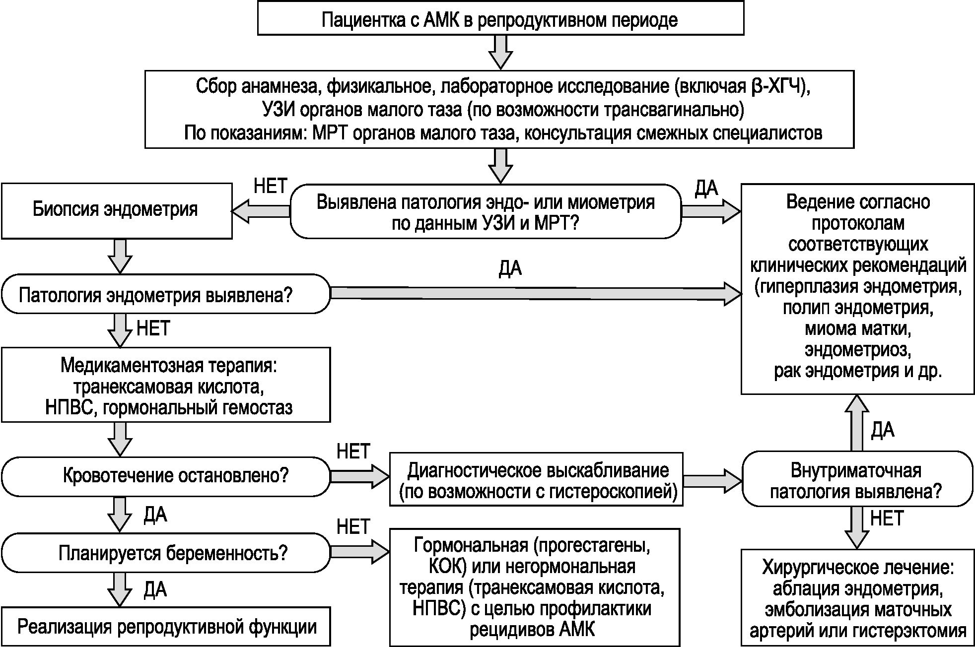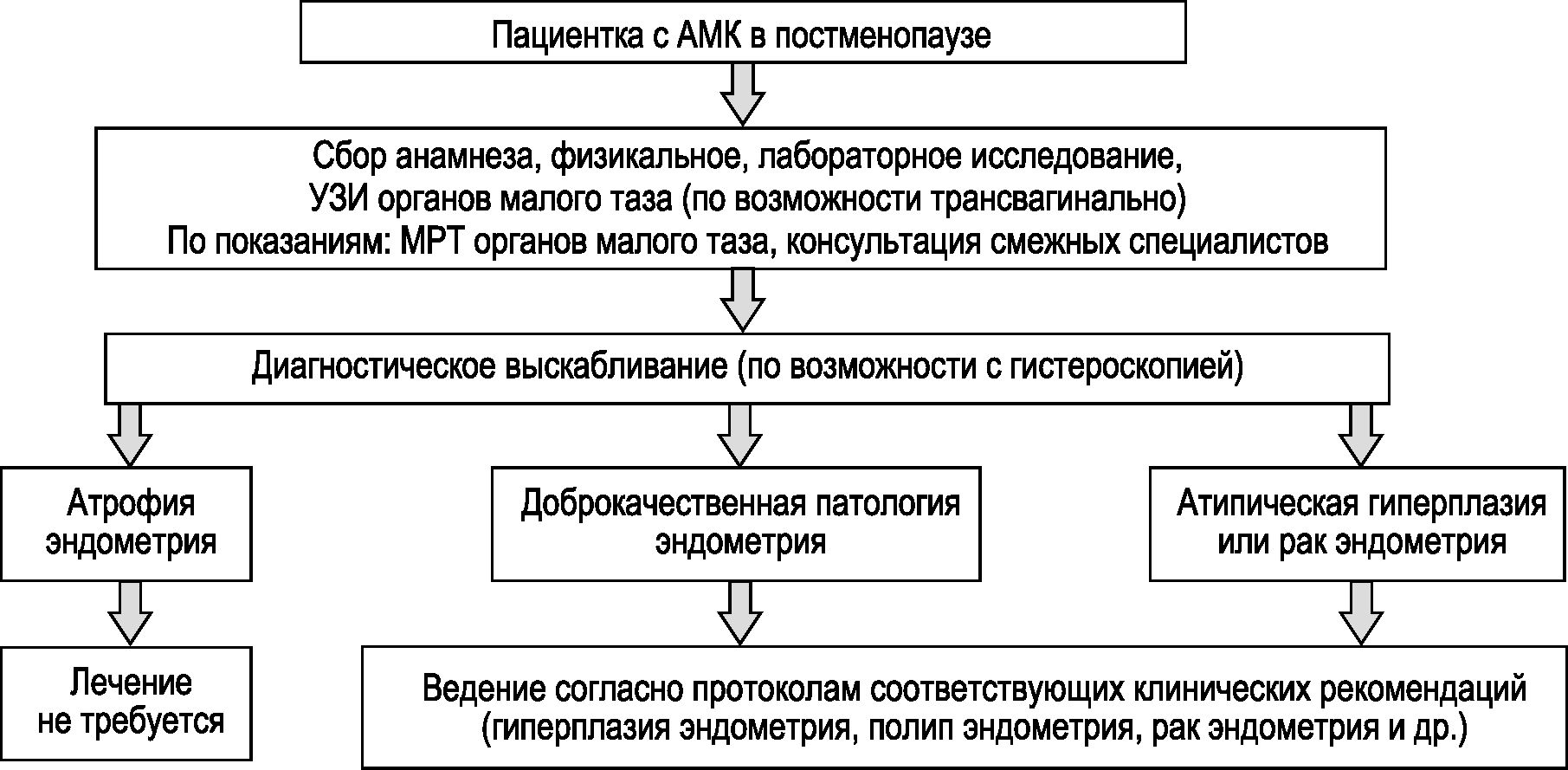 Алгоритм ведения пациенток с АМК в постменопаузе приведён на рис. 5.