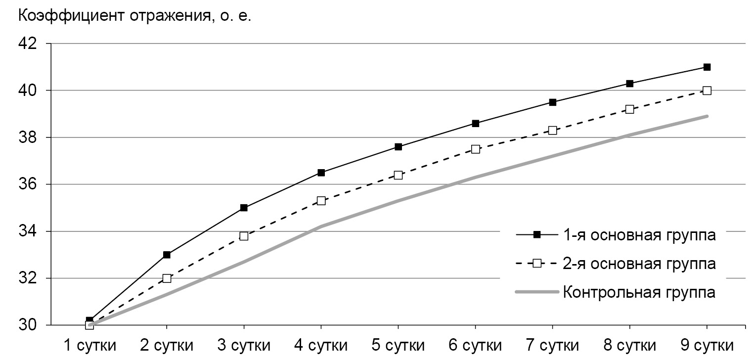 Fig. 1. Dynamics of the optical reflection coefficient of complications after medical abortion.