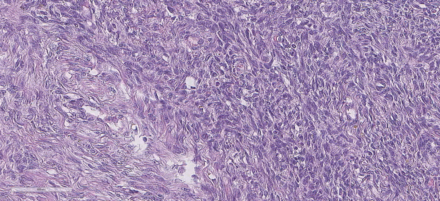 Fig. 3. Ovarian component of the ovotestis, consisting of fibroblasts. Hematoxylin and eosin staining, ×60