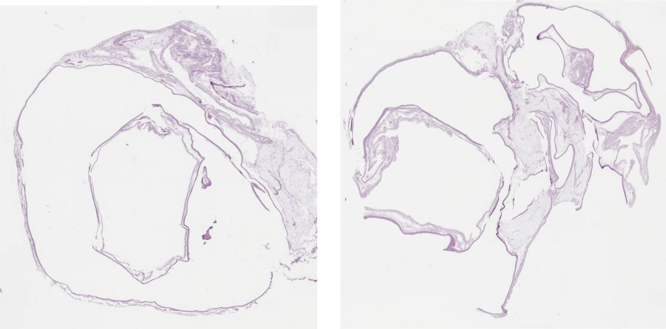 Fig. 5. Right fallopian tube with features of hypoplasia, presenting as a polycystic structure lined by a single layer of flattened tubal epithelium. Hematoxylin and eosin staining, ×6