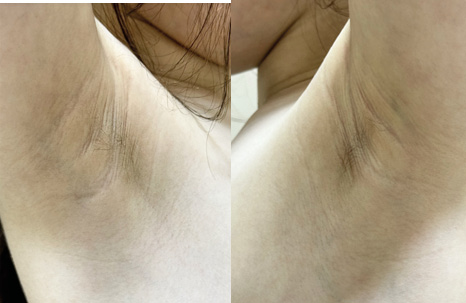 Рис. 1. В области подмышек у пациентки с обеих сторон тёмные терминальные жёсткие волосы.