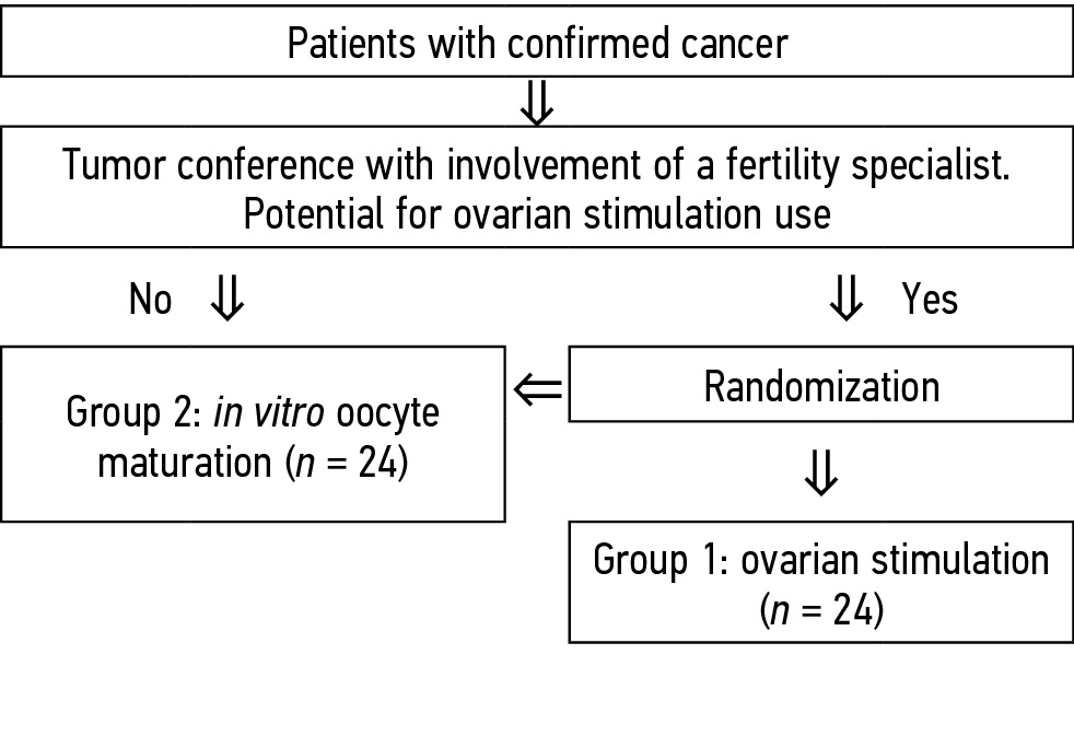 MATERIALS AND METHODS: A prospective study was conducted with 48 women of reproductive age diagnosed with oncological diseases. In the first stage, fertility preservation potential was assessed. After stratifying the patients into groups, ovarian stimulation followed by transvaginal oocyte retrieval was performed, or immature oocytes were obtained for in vitro maturation. The collected material was then assessed by an embryologist, who carried out fertilization and vitrification.