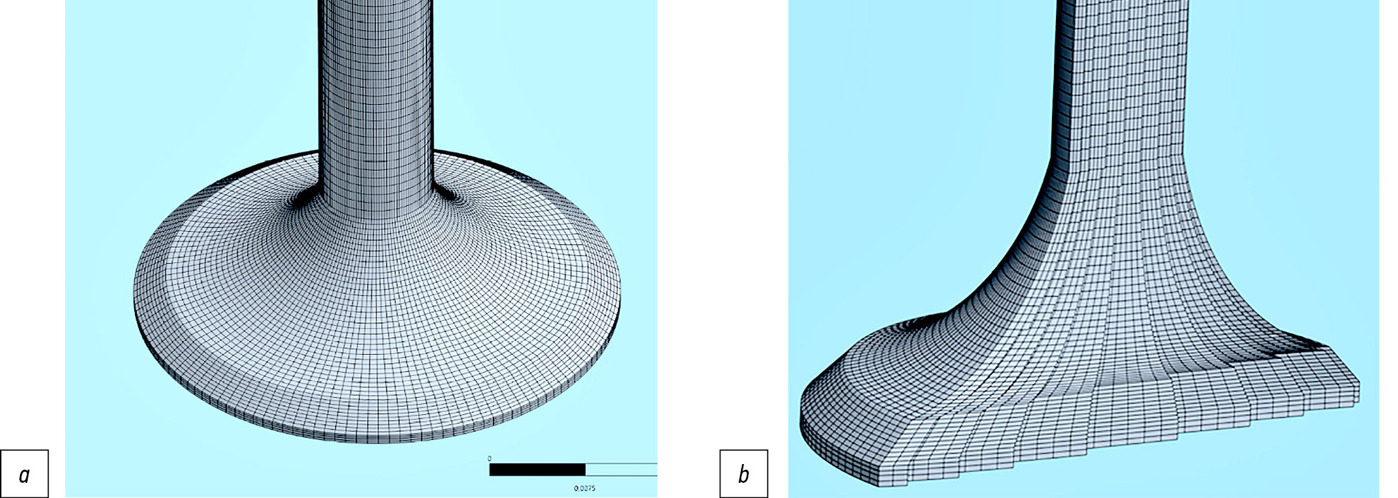 Клапаны в газораспределительном механизме судовых двигателей (СД) работают в условиях повышенной температуры и давления, в среднем температура клапанов может достигать 550/650°C, а в высокофорсированных двигателях 750/800°C. При таких температурах конструкция клапана подвержена высокотемпературной коррозии, [1] короблению тарелки клапана в разных направлениях и как следствие, нарушению посадочного конуса, что приводит к увеличению зазора между седлом и посадочным пояском. Для впускного клапана указанное обстоятельство означает снижение степени сжатия в цилиндре двигателя, утрату работоспособности детали и газораспределительного механизма. Известны работы [2] по изучению влияния температуры и давления на впускной и выпускной клапан, в основном все исследования проводятся в программных комплексах (ПК) учитывая, что экспериментально создать карту распределения температурного поля в клапане очень трудоёмкая задача так же, как и воздействие давления и расчёт предельно допустимых нагрузок. Как правило, указанные задачи трудоемки и требуют не только дополнительных средств, но и наличие лабораторного оборудования. К примеру, в статье [3] авторы для изучения влияния высоких температур на микроструктуру клапана используют сканирующий электронный микроскоп. При помощи которого анализировали структуру изношенных и новых деталей. В работе [4] авторы изучают термические повреждения впускных клапанов в программе «Lotus Engine Simulation», для выполнения расчёта задавались действительные параметры исследуемого ДВС и размеры клапанов. В статье [5] изучается воздействие на впускной и выпускной клапаны коэффициента теплопередачи и температуры, в зависимости от оборотов коленчатого вала с применением ПО 1D Ricardo Wave, где моделировался двигатель для получения происходящих в нём мгновенных термодинамических параметров, которые трудно измерить экспериментально.