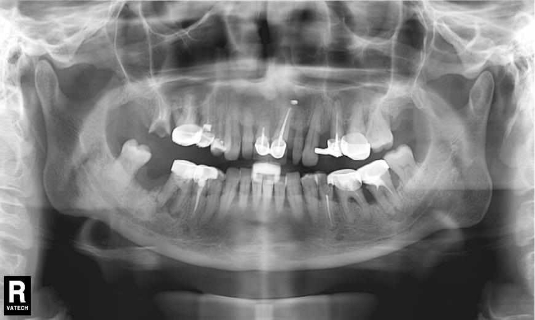 Рис. 2. Ортопантомограмма исходной ситуации пациента состояния полости рта