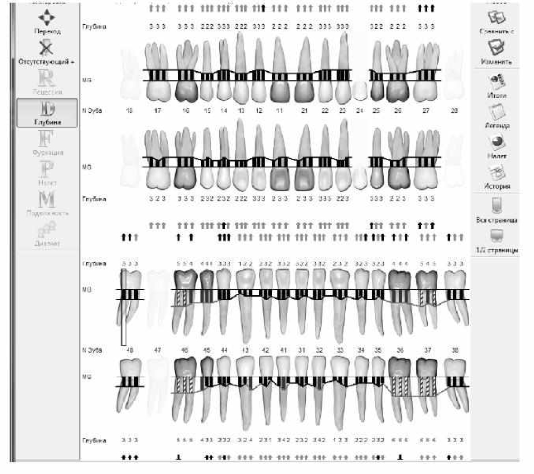 Рис. 3. Пародонтограмма с использованием компьютерного зондирования при первичном обращении