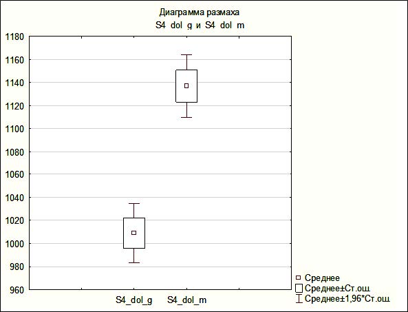 Рис. 5. Размеры сектора S4 ушной раковины, гендерное сравнение